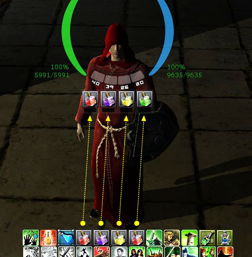 Это очень полезная вещь. В случае если на вас повиснет яд, болезнь, страх или рана, весь экран примет цвет банки, которую необходимо выпить. Нужно будет кликнуть мышкой на соответствующий квадратик в Palantir и банка будет выпита.